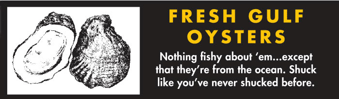 Raw Gulf Oysters Market a dozen shucked served with cocktail sauce, horseradish and crackers